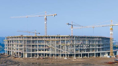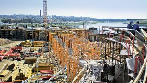 Kauno arenos statytoja – UAB "Vėtrūna", kuri laimėjo Kauno arenos statybų rangovo konkursą. Ši bendrovė laimėjo projektą, pasiūliusi mažiausią darbų atlikimo kainą – 49,2 mln. eurų. Arenos infrastruktūros plėtrai buvo numatyta dviejų tiltų į Nemuno salą statyba. Vienas jų pastatytas naudojant PERI klojinius ir iškilmingai buvo atidarytas 2008 metų birželio pradžioje. Kito tilto statybos darbus su PERI klojiniais šiuo metu atlieka ta pati kelių ir tiltų tiesimo bendrovė "Kauno tiltai", priklausanti infrastruktūros įmonių grupei "Tiltra Group".